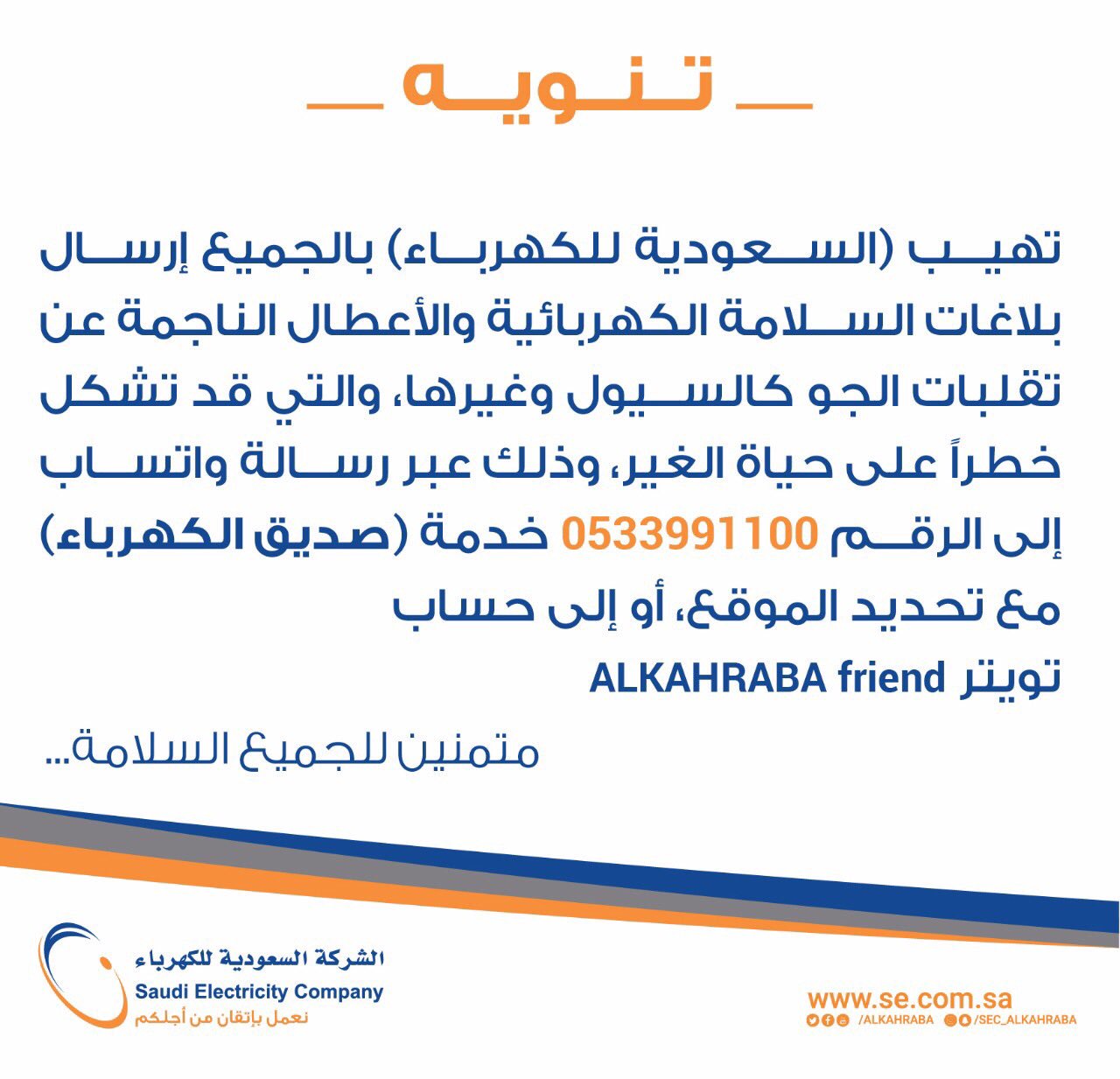 رقم بلاغات الكهرباء